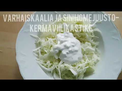 Tämä on minun lempisalaattia näin kesäisin. Ohueksi suikaloitu varhaiskaali maistuu ihanalta sinihomejuustokastikkeen kanssa. Edullista ja erittäin maukasta salaattia. Mikäpä olisi helpompi lisuke myös grilliruoille, uusille perunoille, pihveille,kalalle jne., kuin ohueksi silputtu varhaiskaali. Sen kanssa itse syön melkeinpä aina...